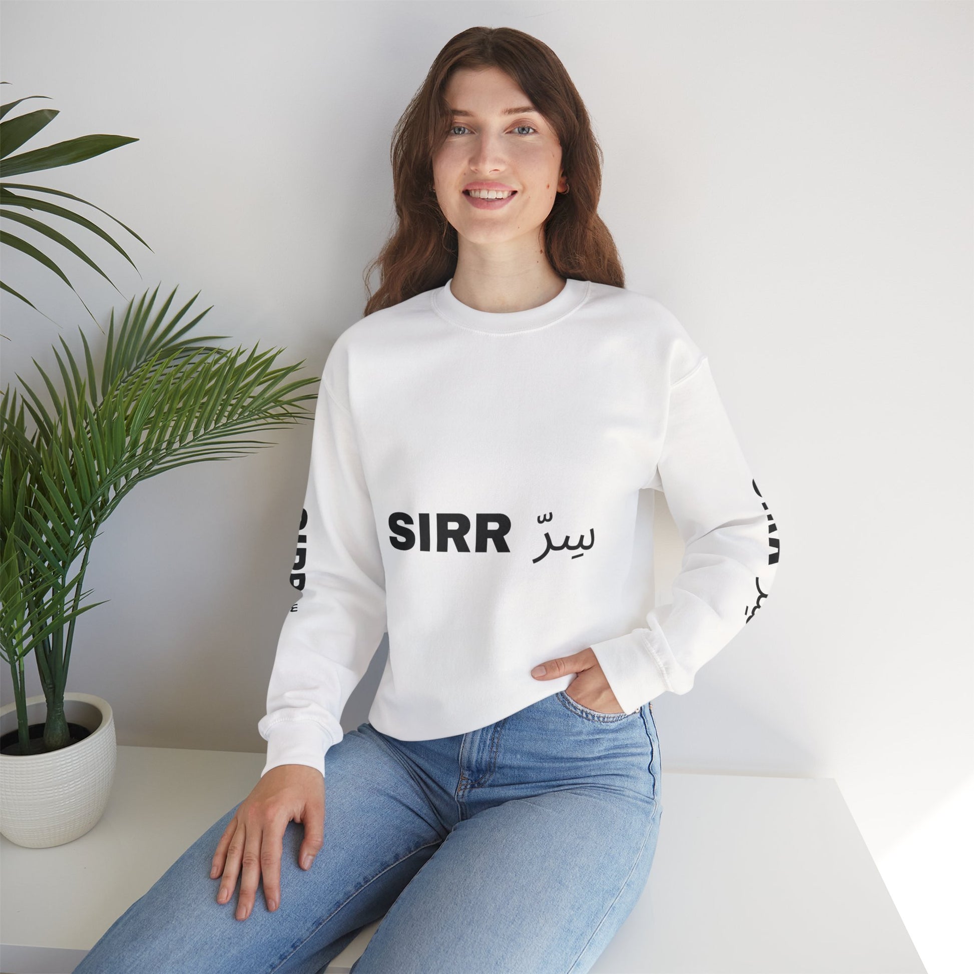 Soft, clean, and quietly bold — this crewneck sweatshirt layers comfort with subtle, meaningful presence. The simple 'SIRR' across the chest and back, paired with the matching script on each sleeve, reads calm and considered. Wear it on slow mornings, city walks, or late-night study sessions; the sweatshirt settles into your routine and becomes a reliable piece you reach for when you want comfort that still feels thoughtful. The neutral white background keeps the focus on the lettering, making the design feel both minimalist and intentional. It moves easily from cozy home evenings to casual meet-ups, offering warmth without fuss and a low-key statement for those who prefer quiet confidence.